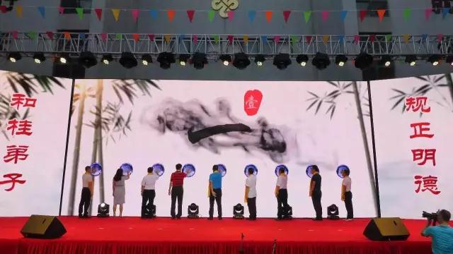 和桂集總裁黃偉文先生上臺發(fā)表了晚宴致辭,他對出席晚宴的領導、嘉賓及和桂家人表達了感謝。隨后,黃總邀請有關領導及嘉賓朋友上臺共同見證和桂集團學習國學文化的啟動儀式。他號召和桂弟子不僅傳承中華優(yōu)秀傳統(tǒng)文化,更要不斷以此鞭策自省,錘煉自我,匠心做事。在和桂集團全體常委帶領下,和桂全體員工誦讀《弟子規(guī)》,朗朗誦聲回蕩在籃球場上空。