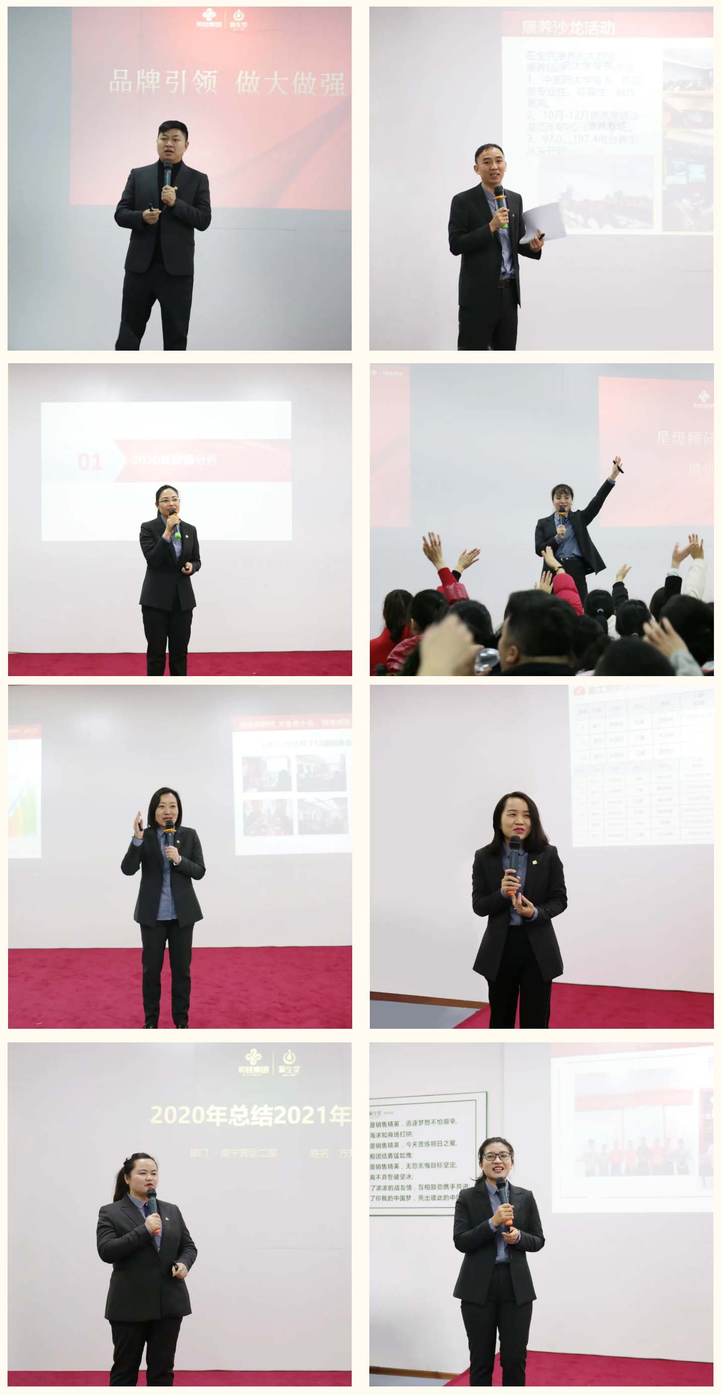 各部門(mén)根據(jù)本部門(mén)的實(shí)際工作情況,分別從品牌規(guī)劃、產(chǎn)品研發(fā)、服務(wù)提升、門(mén)店管理、人員培訓(xùn)、拓客營(yíng)銷(xiāo)、招商加盟等方面進(jìn)行了匯報(bào),匯報(bào)工作亮點(diǎn)突出,可行性強(qiáng),一個(gè)個(gè)奮斗的故事,感動(dòng)人心,一個(gè)個(gè)創(chuàng)新的思路,振奮人心。參會(huì)的家人紛紛表示,2021年,一定會(huì)繼續(xù)發(fā)揚(yáng)艱苦奮斗的精神,嚴(yán)格執(zhí)行各項(xiàng)工作計(jì)劃,超額完成制定的任務(wù)目標(biāo)。