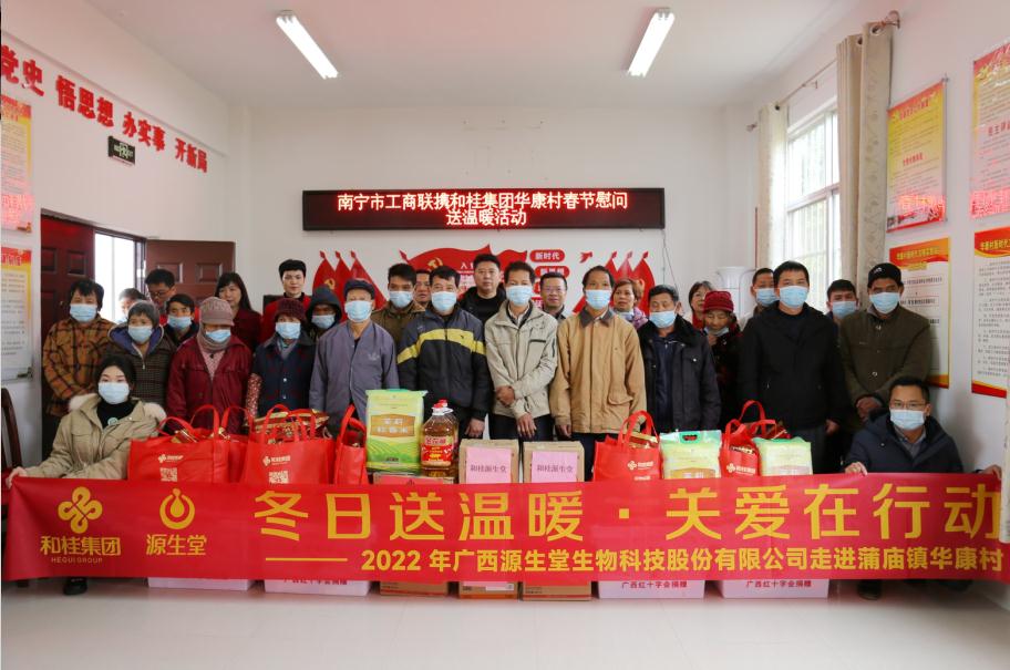 1月17日、18日,在和桂集團(tuán)黨支部的統(tǒng)一部署下,和桂源生堂會(huì)同南寧市工商業(yè)聯(lián)合會(huì)、南寧市勞動(dòng)保障監(jiān)察支隊(duì)黨支部的相關(guān)黨員同志,深入到邕寧區(qū)蒲廟鎮(zhèn)華康村,上林縣白圩鎮(zhèn)龍樓村、大浪村開(kāi)展春節(jié)慰問(wèn)送溫暖活動(dòng)。