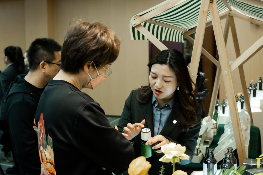源生堂市場部總監(jiān)甘斌分享了最新的市場變化和頭部養(yǎng)護趨勢,以及2023年品牌營銷計劃,并隆重介紹最近上市的重磅新品,包括源生堂舒緩精華乳、源生堂舒享靜安精油和舒緩悅活精油等,以植物精萃、溫和親膚、使用便捷的產品特點,引起大家的濃厚興趣,紛紛加入體驗。